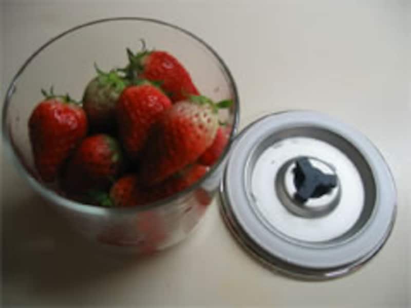 | 密閉度が高い保存容器のため、いろいろな食材保存に適しています。蓋を開ける時は中央の「キープフレッシュバルブ」を摘まみ上げ真空状態を解除して両手で開きます。 | ||