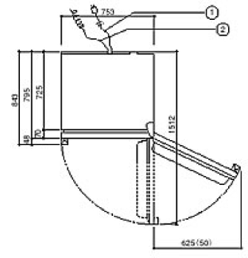 | ■ドイツ・ミーレ社の冷凍冷蔵庫はボトムフリーザータイプ(上は冷蔵庫、下が冷凍庫の構成)で、500mm扉が開かないと冷凍庫の引出しが引出せない。また全開するには560mmが必要。 | ||