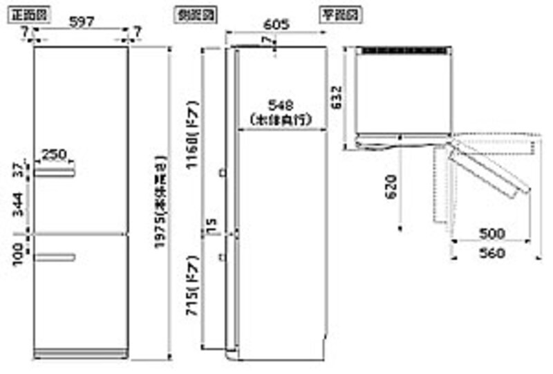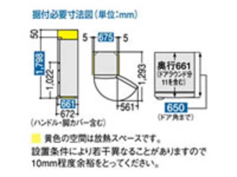 | ◇実は冷蔵庫メーカーのカタログには、この冷蔵庫扉が全開するために必要な寸法が明記されているのです。 代表的な国産冷凍冷蔵庫とヨーロッパタイプの冷凍冷蔵庫、アメリカタイプの冷凍冷蔵庫の扉全開寸法を見てみましょう。 |