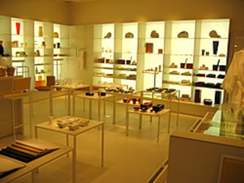 「MITATE」のショップ内には、。ゆっくりとバスタイムを楽しむためのサニタリー空間用のさまざまなアイテムの商品が展示販売されている。 |