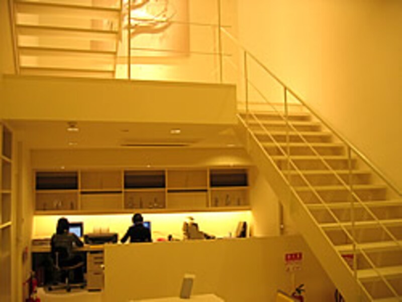 「MITATE」のショップ内から地下1階のショールへ降りる吹き抜け階段。 |