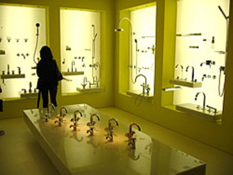 一番奥の4ゾーンがドンブラハの水栓金具のバリエーション展示。 |