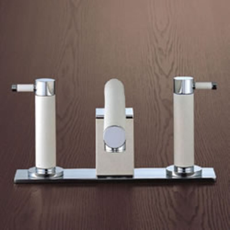 |  三栄水栓からユニークなデザインのキッチン水栓が新登場です。ベース本体の四角い部分が焼物の陶器で作られている、個性的なデザインの水栓です。 水栓金具にはその取付方式によるデッキタイプと壁出しタイプの違い、操作方式によるツーハンドルタイプとシングルレバー方式の違いがあり、その使い勝手も違いますから、自分のキッチン作業に合わせた器具の選択が必要となります。 水栓金具も他人まかせでなく、自分自信の目と実際のの操作感を確認しながら選ぶようにしてください。 | ||||