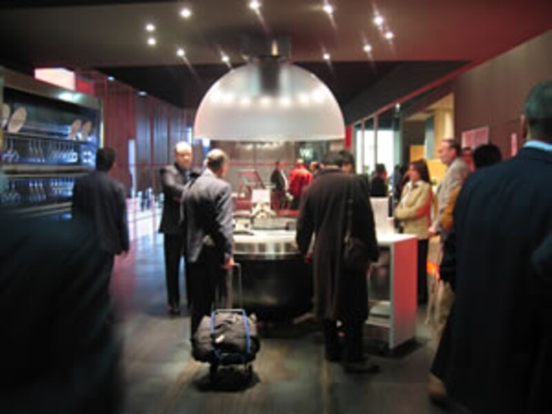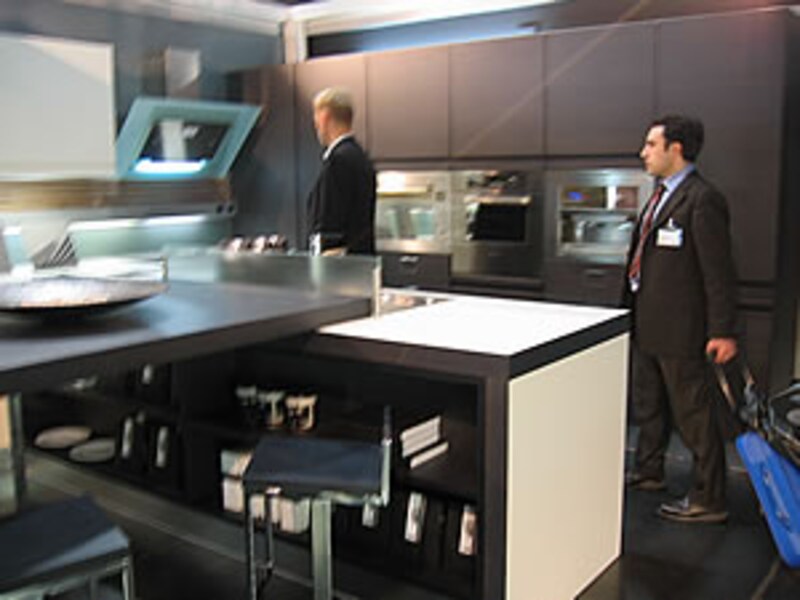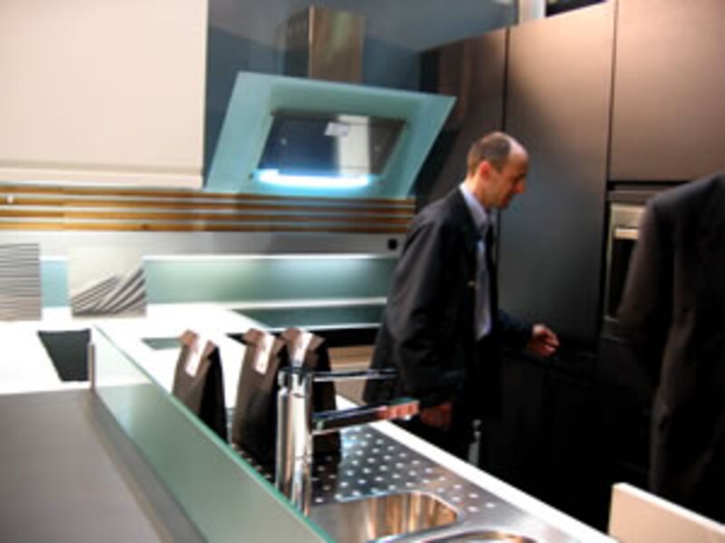 | 遠来の日本人を大歓迎。ロープをはり巡らした中に入れてくれ、実演してくれる。 日本でこのキッチンが売れないだろうかと一生懸命に売り込まれた。『アイデアは面白いけれど・・・』 |