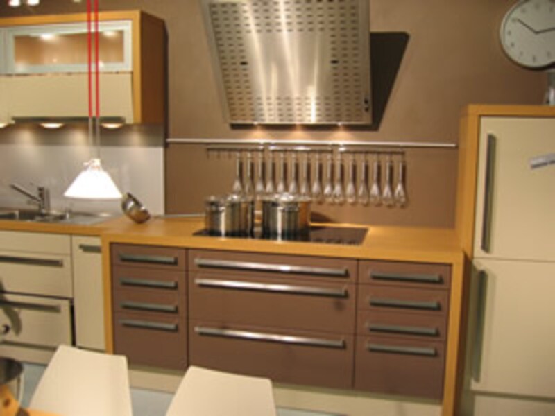 | ユニークなスタイルのレンジフードが増えたが、どれも油煙の捕集に向いている形状とは思えない。 |