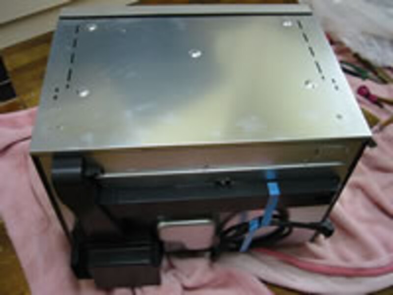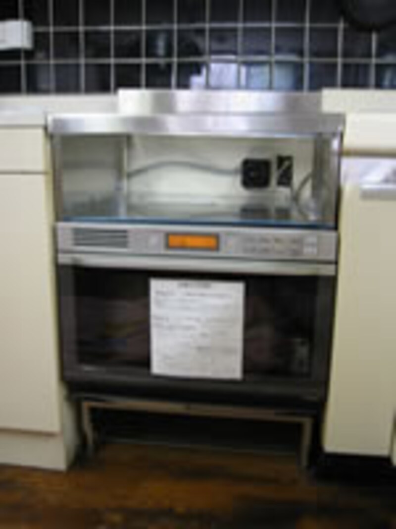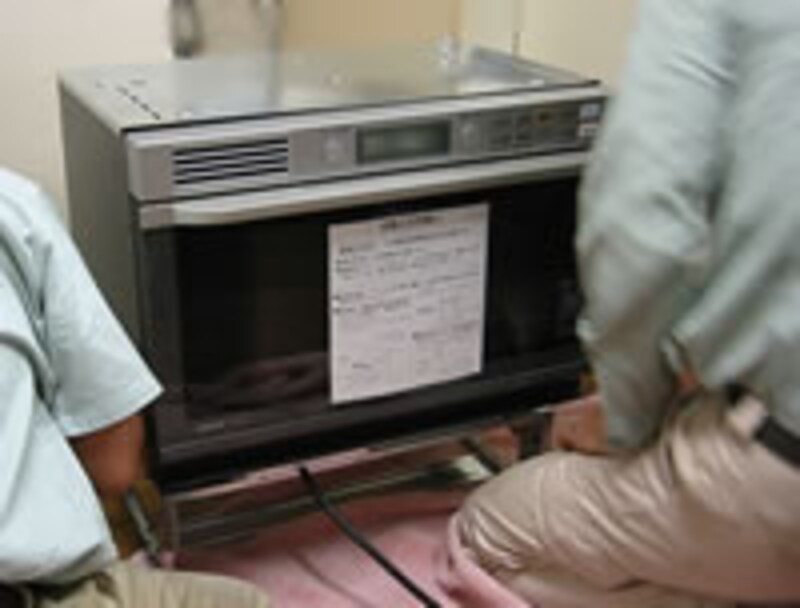 | 作業は、まずオーブンレンジの設置から始める。オーブンレンジの表側と、右は裏側。 | ||
