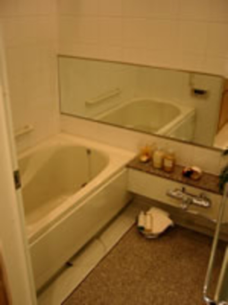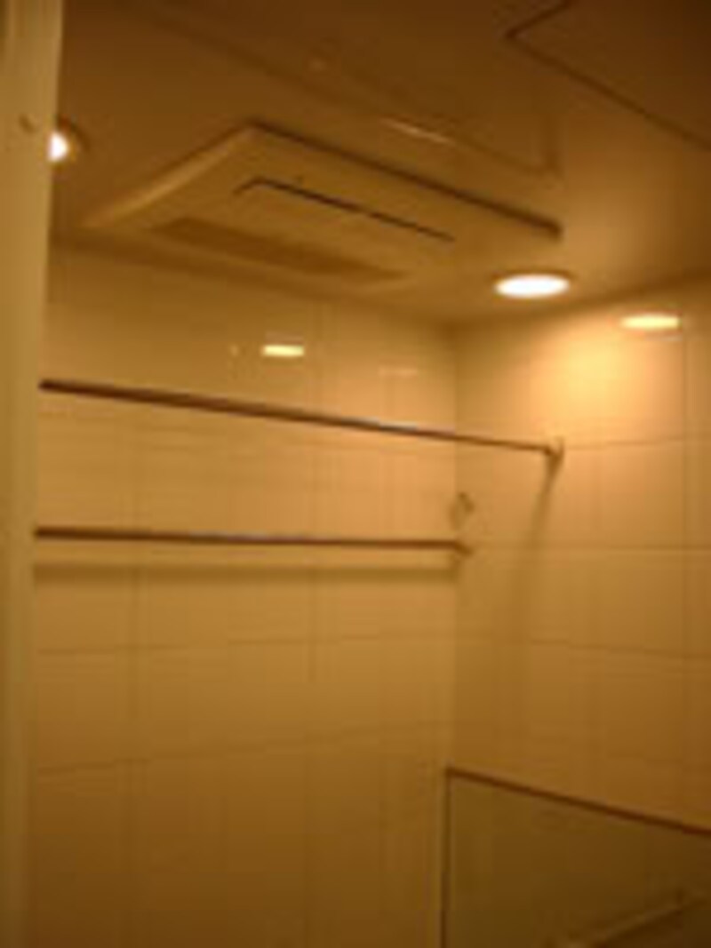 | 1418サイズの大型浴室の床は天然大理石仕上げ。浴室暖房換気乾燥ユニットが天井に組み込まれている。 | ||