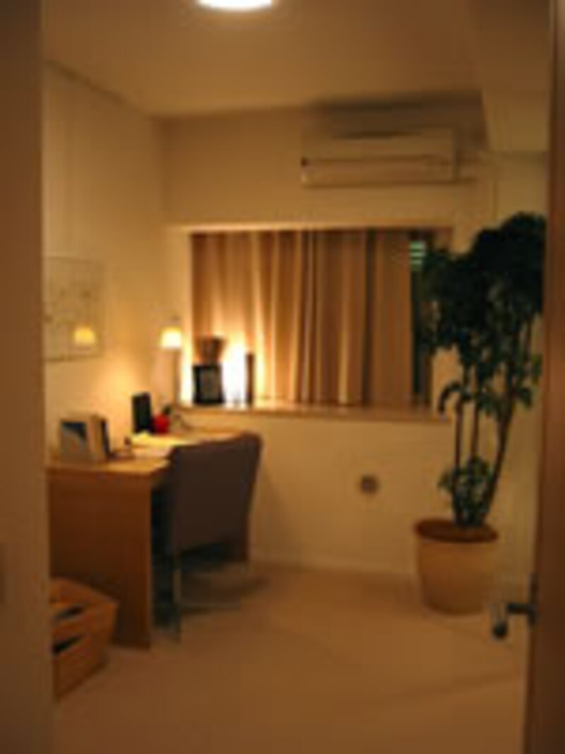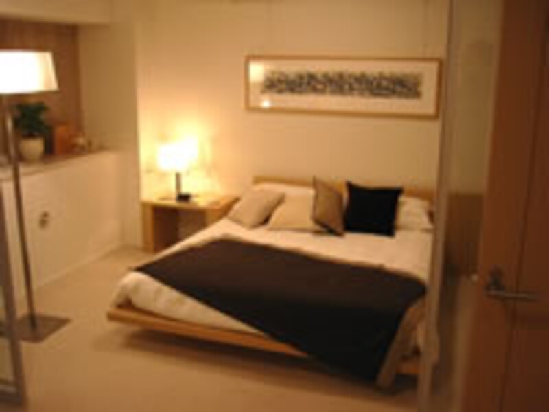 | オプションのガラス引き戸で仕切られたセレクトプランのマスターベッドルームと書斎。基本プランでは5帖と7帖のクロゼット付き洋室となっている。 | ||