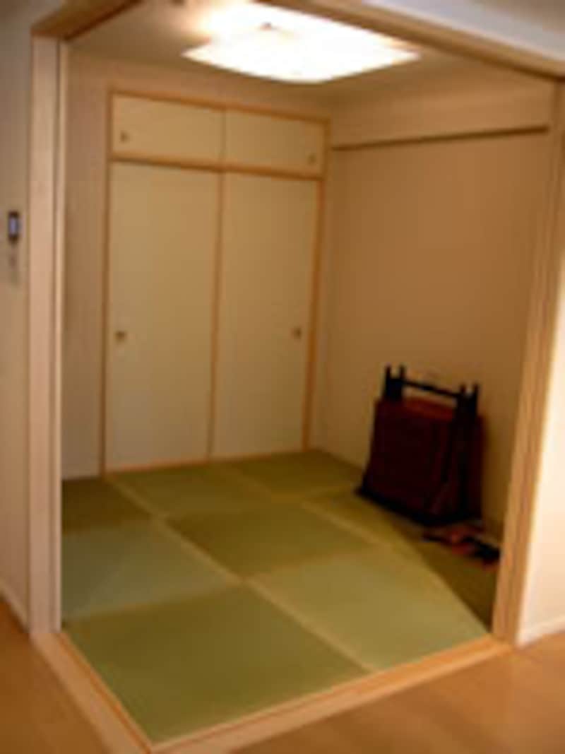 | セレクトプランにより4.5帖にしてオプションのふちなし畳を敷いた和室。 このモデルルームタイプは、3LDK 86.01平方メートルの占有面積がある。 |