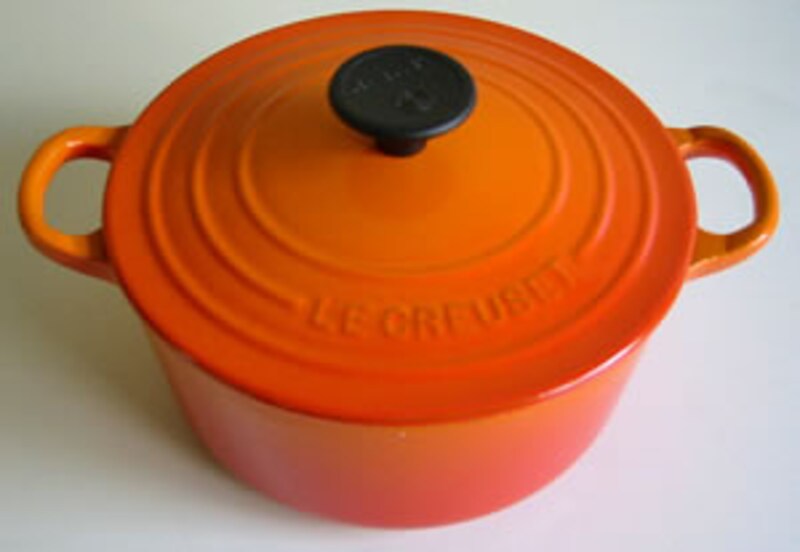 | この新しい流れに先鞭をつけたのが、「ルクルーゼ」。 えもゆわれぬ暖かい造形と色使い、持ち上げて実感できる重量感が与える安心感と本物を持つことの満足感・・・そこはかと匂う昔の台所イメージ・・・等々、これらは同じように金属の鍋でありながら、戸惑いを感じながら使ってきたステンレスやアルミの鍋にくらべると料理の楽しさを演出してくれる大切な調理道具として、システムキッチンが浸透したキッチン空間で、またたく間に人気を得た。 |