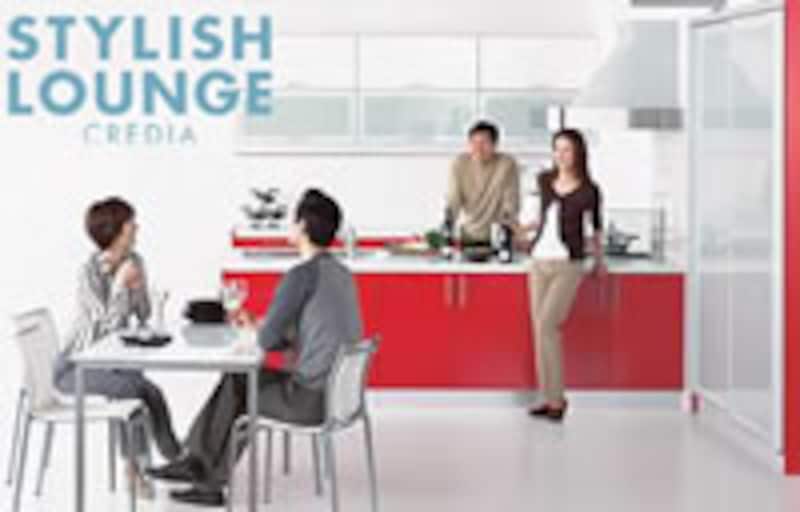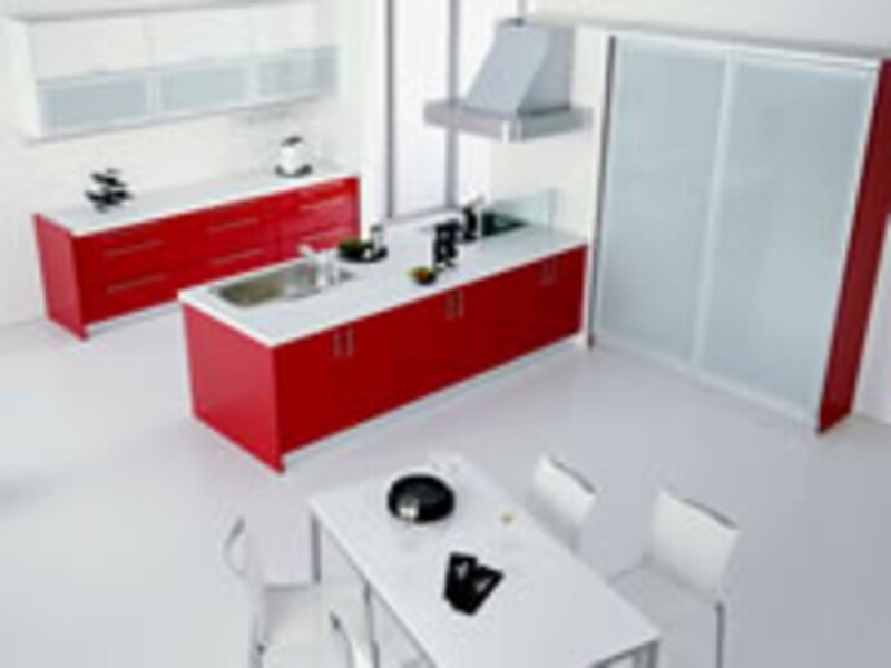 今年話題を呼んだTV・CMが、トステムのスタイリッシュ・ラウンジと名付けられた真っ赤なキッチン。 |