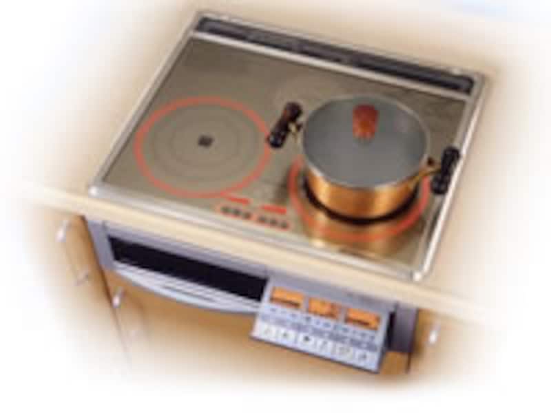 | 鍋を選ぶといわれたIHクッキングヒーターが、形状や重量によっての制約はあるもののオールメタル加熱方式の採用により、多層鍋やアルミや銅の鍋まで使用可能となった。 IHクッキングヒーターの魅力はなんといっても、フルフラットなトップ面が手入れしやすいこと、そして排気ガスを出さないクリーンなキッチンづくりに大いに役立つことである。 両面焼きの魚焼きグリルも、オートで焼いても失敗しない焼き魚が楽しめる。 またこのクックトップの下に一体型に設置できるビルトインオーブンレンジ(NE-DB701)は、600Wの電子レンジ、2.5Kwのグリル、3.9Kwのオーブン機能が一体となり、庫内寸法がWidth394mm×Depth309mm×Height259mmという家庭用としては充分な33リットルの容量を確保している点も見逃せない。 |