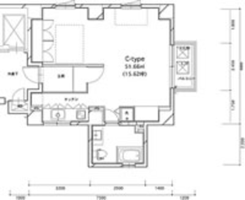 | 洗面ユニットのデザインもIDEE STYLEのこだわりを感じさせる。このCtypeは、専有面積が約50平方メートルで月額賃料は21~22万円台(管理費込)。 | ||