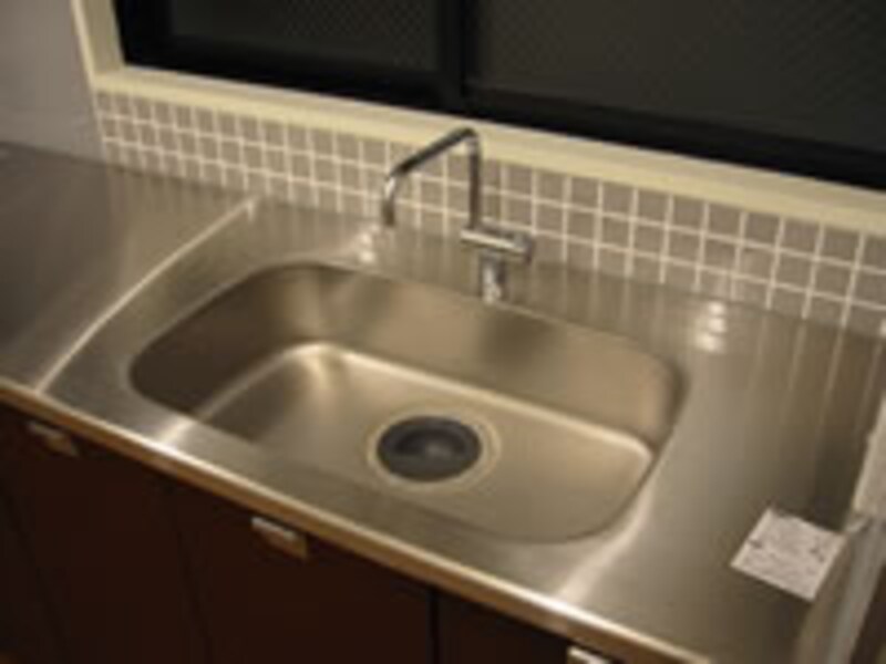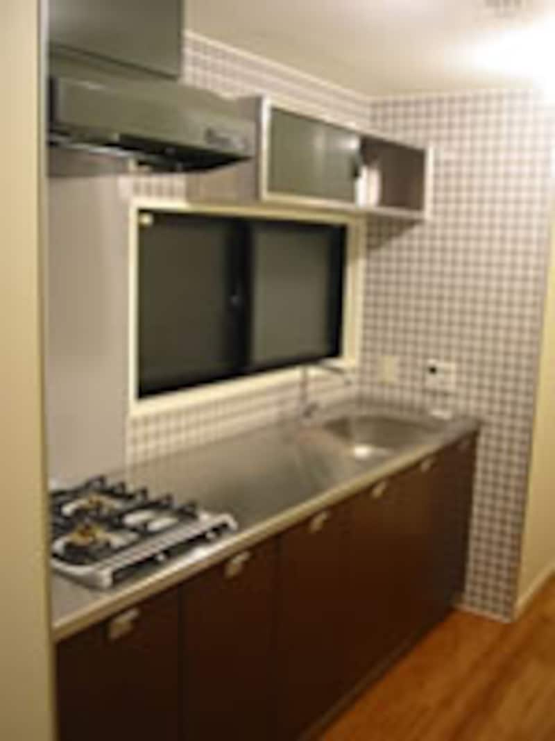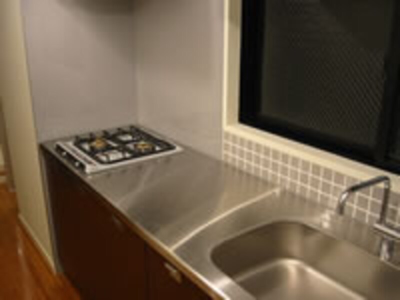 | イデーがキッチンメーカーと共同開発したステンレストップのオリジナルキッチン。クックトップは2口のガス仕様。 | ||