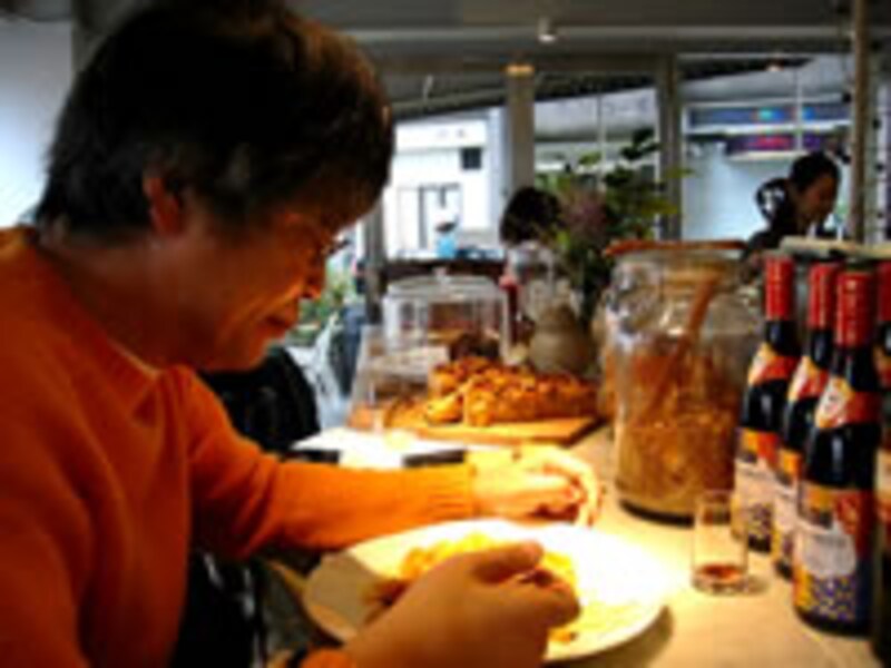 | 「いつでもおいしく朝ごはんが食べられる」というコンセプトのもと、この地域に根ざしたフードサービスを目指し、徹底して体に良いオーガニックと、自分達の出したゴミを大地に還すエコロジーを二つの軸に展開する「O.R.G food bar」が、「IDEE ROOMS UEHARA」の1階にオープンした。右は開店三日目のランチメニューの案内。営業時間の詳細は「O.R.G food bar」のサイトをご覧ください。 | ||