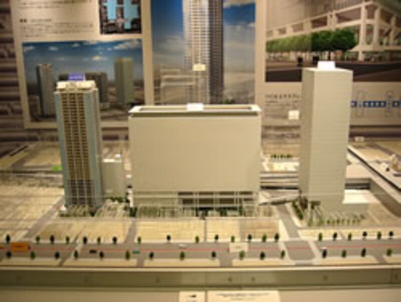 | 秋葉原再開発プロジェクトの模型。 南側にあたる一番右が秋葉原駅。2棟の白いITセンタービルに並んで左が40階建て総戸数319戸のTOKYO TIMES TOWER。奥に山手線、手前にはアキバ電気街の中央通りが並行する。 2005年には「つくばエクスプレス」が開業し、JR秋葉原駅から徒歩5分、地下鉄銀座線末広町駅から徒歩2分足らずの至近距離は、この都市型集合住宅の価値を高める絶好のロケーション。 |