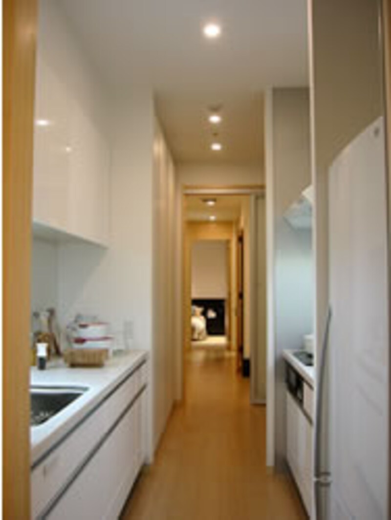 | 2列型に配置されたキッチンのシンク側約2700mm巾。 |