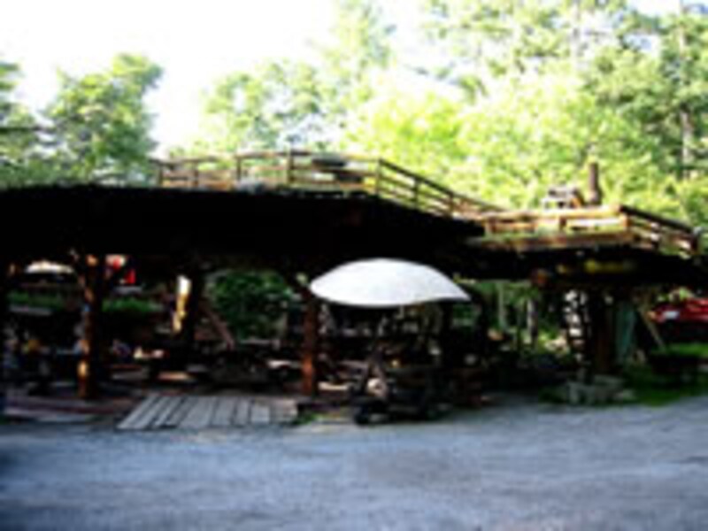| 茅野市から原村方面に走り、八ヶ岳への登山口「美濃戸」へ向うと農業実践大学校の八ヶ岳農場がある。そのすぐ手前を右に入ると、楓の葉をかたどったカナダ国旗がはためくカナディアンファームがある。 名前の通り、自然農法を実践するカナディアンファームだが、この農場の中心にあるのが、レストラン。 上の写真はカナディアンファーム全体のマップ。このマップのまん中一番下にレストランがある。 |