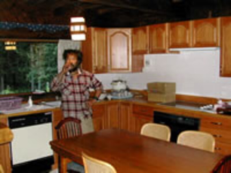 | 唯一の既製品であるアメリカからの輸入キッチンをセットしたゲストハウスで、長谷川オーナーにすっかりご馳走になる。 | ||