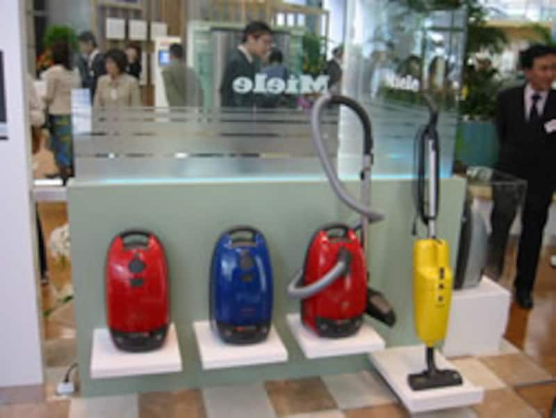 | 得意とする家庭用の掃除機のラインアップ。ビビッドな色使いが楽しい。 |