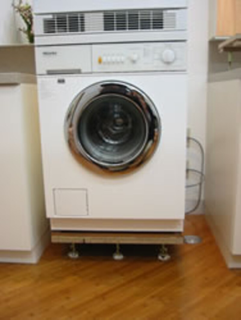 ドラム式洗濯機や乾燥機の荷重と、振動に耐えるための、床構造のモデルを展示している。