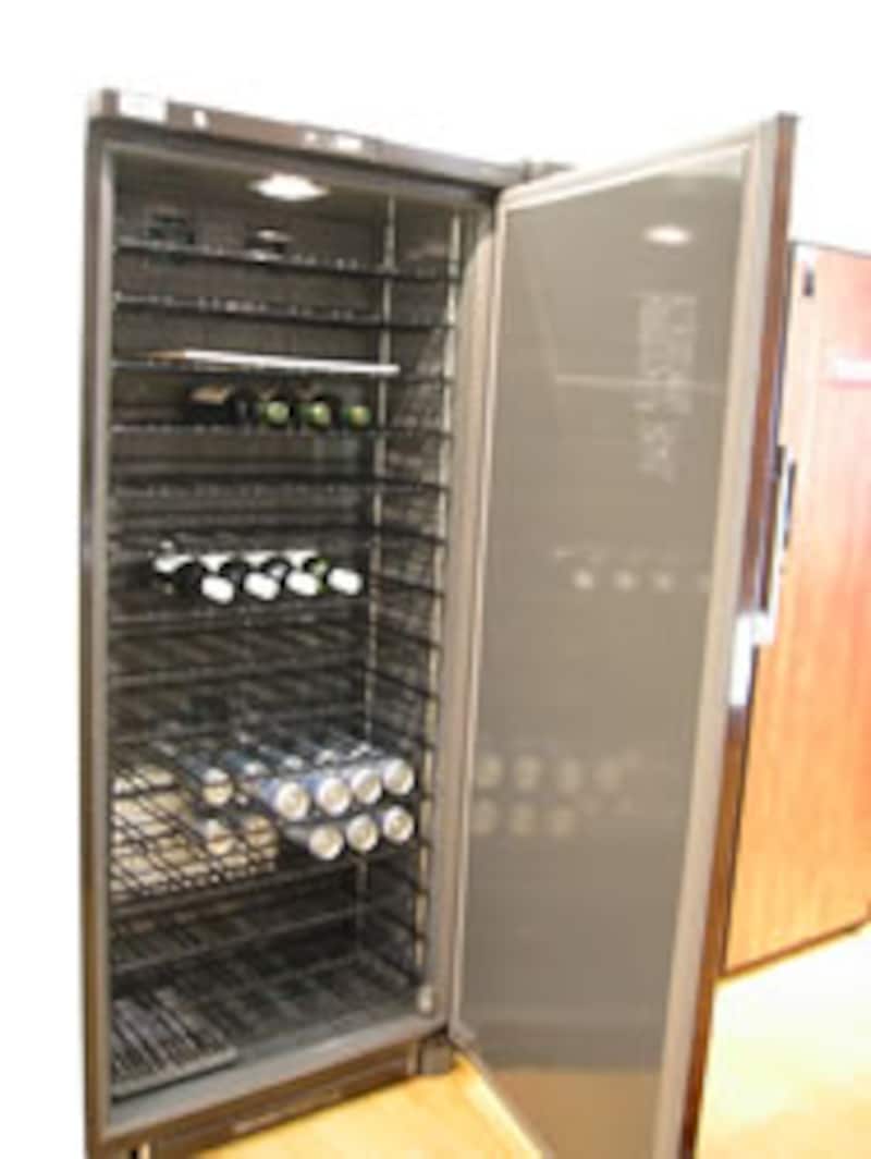 | 下の3機種は大型のワインセラーです。 小型から中型のワインセラーは、ホームバーの一部に組込むことが多いのですが、このような大型の機種は、150本近い大量のワインを、保存熟成させることを目的としています。 設置する場所は、本体重量とワインの重量を合算して床の強度を確保する必要があります。 |