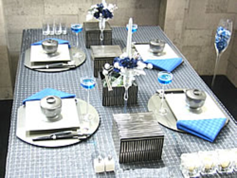 | メタリックシルバーとアクセントブルーのナプキン、そしてブルーレディの鮮やかな組み合わせ。 |