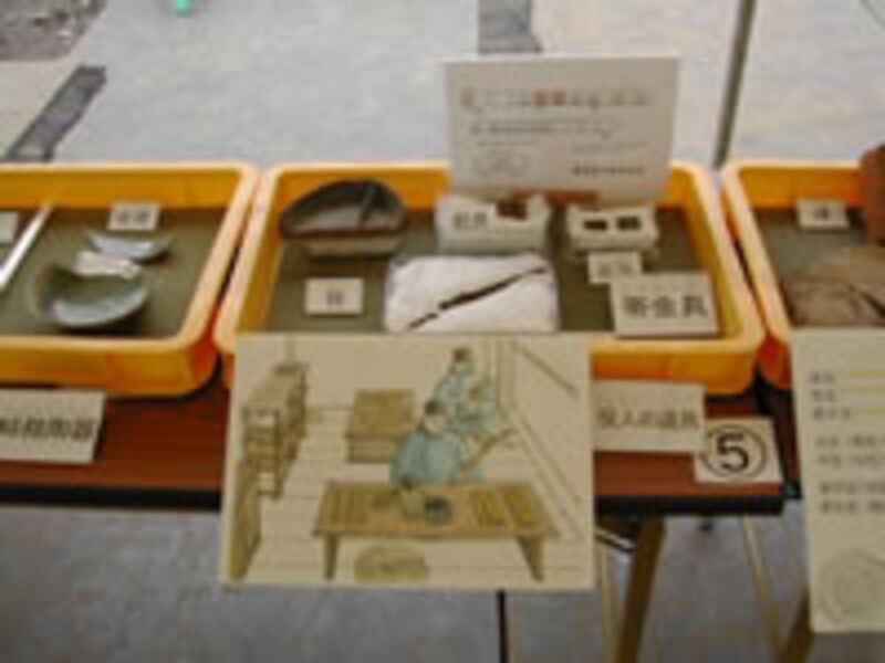 | 役人の道具、硯(すずり)など | 瓦の一部 | |