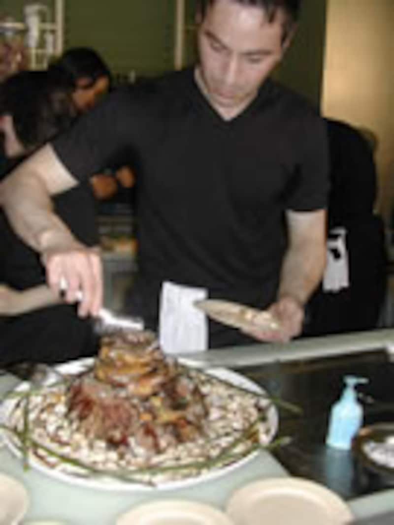 イタリア人調理師は、ローストビーフの大皿盛りを披露。