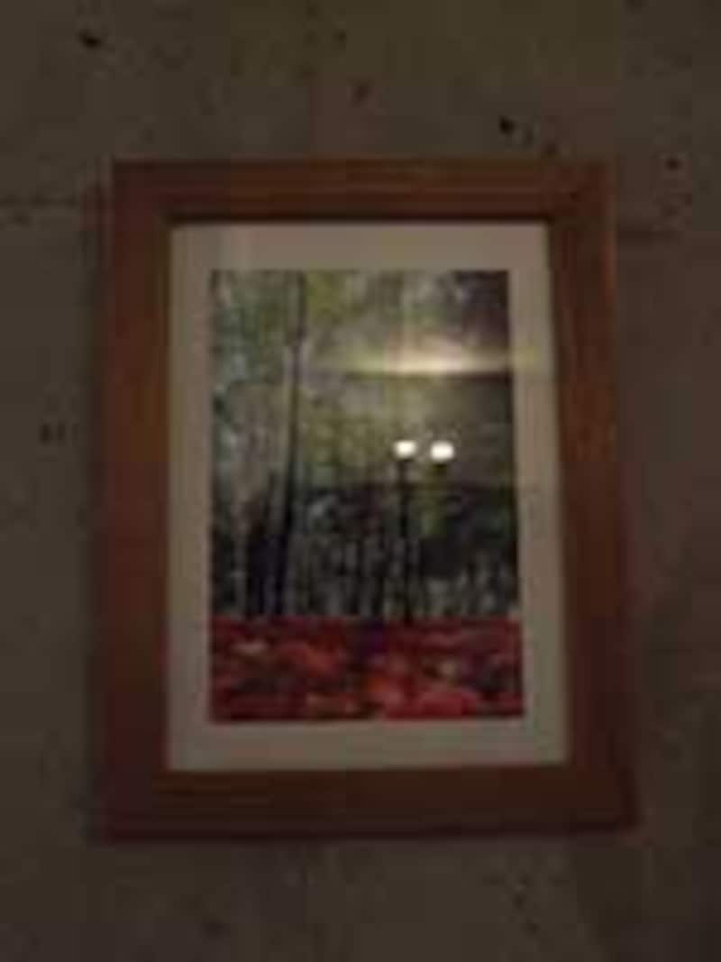 それをスポットライトで照明しようとすると、必ずといってよいほど、スポット光が絵画のガラス面に映り込んで、却って絵が見づらくなるのです。