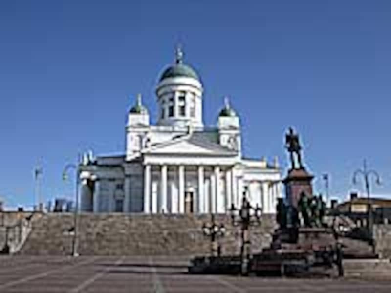 | 写真2.ヘルシンキ大聖堂。階段に腰掛けて休憩する人も多いようです。 |