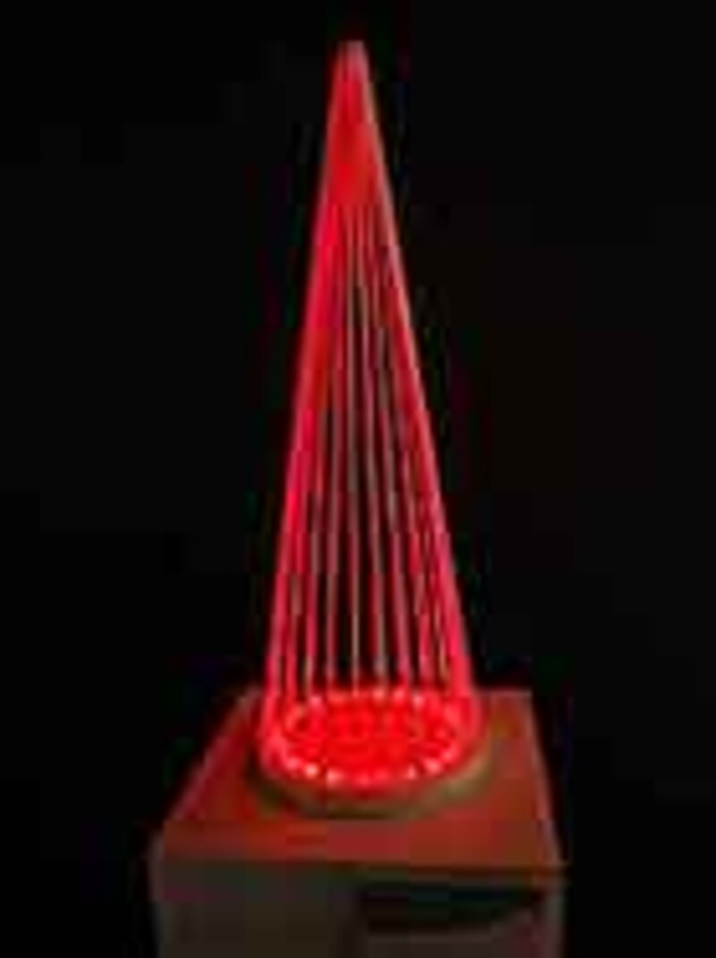 参加アーティストと作品のご紹介1写真4.伊藤隆道氏の作品写真5.馬場美次氏の作品写真6.伊藤隆治氏の作品参加アーティストは、伊藤隆道氏、忠嶋肇氏、大野由紀子氏、酒井正氏、伊藤隆治氏、小松宏誠氏、四方健雄氏、馬場美次氏、竹澤葵氏、高須加昌志氏、桜井龍氏、橋本学氏、臼井秀之氏、高橋綾氏の14名(順不同)です。写真4は造形家の伊藤隆道氏の「ラセンツリー」です。回転しているラセンにはLEDの光が点々と映りこみ、光と影の変化が美しく、しばらく見入ってしまいました。伊藤氏は日本で初めてイルミネーション・オブジェを行ったことでも有名で、そのホワイトイルミネーション・サッポロ(1980年)から全国に広がりました。写真5はライトアートから照明器具、舞台照明まで手掛ける、馬場美次氏の作品です。壁面を大胆に使用した印象的なツリーで、中心には小さな赤い光が時折点滅しています。赤い光は生きているように見え、人工的なtreeの中にも自然を感じる面白い作品です。写真6は環境芸術を中心にアートプロデューサーとしても活躍する伊藤隆治氏の作品です。円錐状のフレームをLEDの赤い光でライトアップし、フレーム全体が赤々と色づき暖かな雰囲気です。次の頁では、参加アーティストと作品のご紹介2を掲載しています。前のページへ123次のページへ
