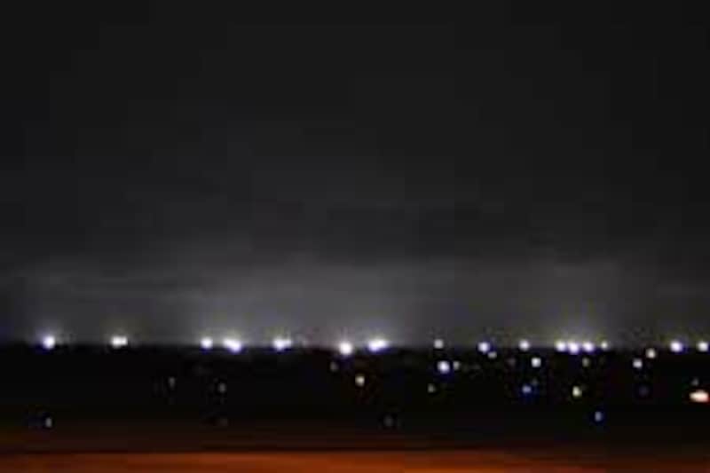 | 写真3.イカ釣り漁船の強い光で、空が明るくなっているのがわかります。(空港の送迎デッキで撮影) |