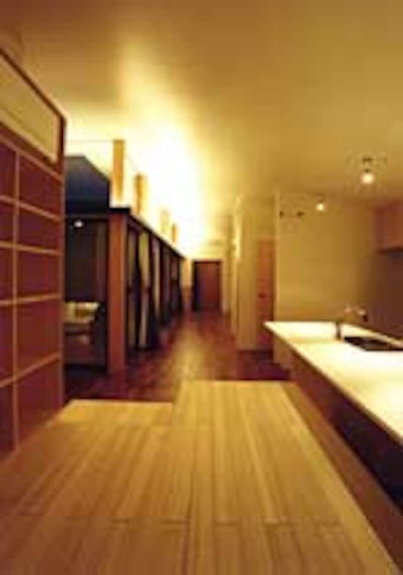 | 写真2.間接照明でつなぐ部屋と一体になった廊下(TKO-M.architects) |