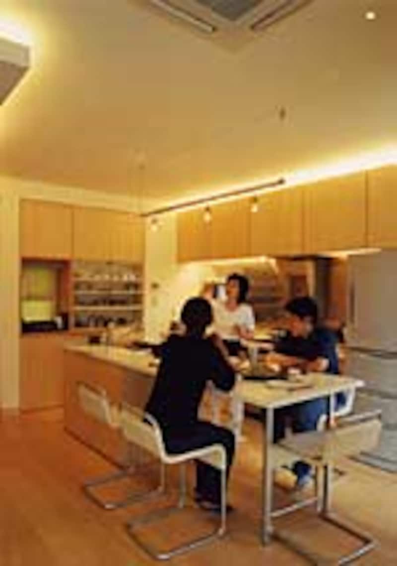 | 写真5.間接照明とペンダントを併用した明るい雰囲気のダイニング |
