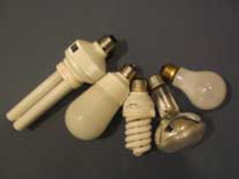 照明器具の汚れやすいキッチン写真1.キッチンは照明器具が最も汚れやすい場所。新年を迎えるにあたってあちらこちらの家々で大掃除が始まります。なかでも照明器具の掃除は器具が天井に付いているものほど作業が厄介なため、埃を落としたり、からぶきで簡単に終えることが多いです。住宅の各部屋の中で最も汚れやすく、汚れによる照度の低下が顕著なのはキッチンです。一年以上も掃除を行わないと明るさが30%以上も低下することもあり、電気の無駄使いになります。照明器具の寿命は、特に蛍光灯は安定器の関係で約8年から10年です。実態はそれ以上に使用している家庭も少なくありません。しかし清掃をしても明るさが余り回復しない全般照明用器具は新たにまぶしさがない効率の良い器具に取替えることが薦められます。写真2.E26ベースの光源。左からFDL、A、D形電球型蛍光ランプ、リフレクター電球、白色電球。キッチンでは反射鏡付きダウンライトがしばしば選ばれております。金属で表面塗装してあるものは化学雑巾が効果的です。アルミニウム反射鏡やメッキ、塗装仕上げはやわらかい布で空拭きします。アルミニウム反射鏡にある仕上げで耐食性を高めているものがありますが、これも長い間手入れをせずに使っていると反射鏡の表目が変質して照度の低下を招きます。したがってキッチンの場合は頻繁なお手入れが必要になります。次の頁では、ランプ交換の落とし穴についてご紹介しています。12次のページへ