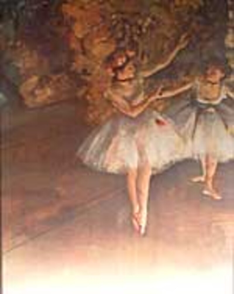 一方、ドガの踊り子のように蝋燭かガス灯かは分りませんが足元からの舞台照明で描かれた絵画では、暖かな光で下から照明することによって(写真5)、より絵画の雰囲気を楽しむことが出来ます。もちろん本物の絵画を照明する場合は、紫外線や赤外線による退色や劣化を防ぐため、ガラスケースに納められ、極力光量を落とした中で鑑賞するのが一般的です。