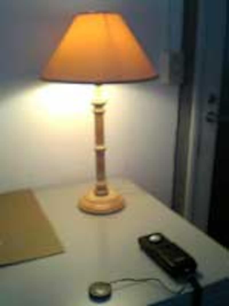 | 写真5.100W白色塗装電球で照度を計測 |