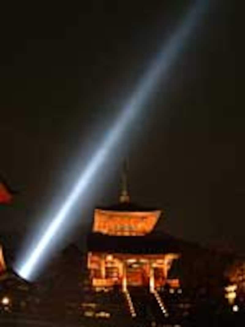 | 写真2.雨の日は光芒がくっきり見えます。(清水寺) |