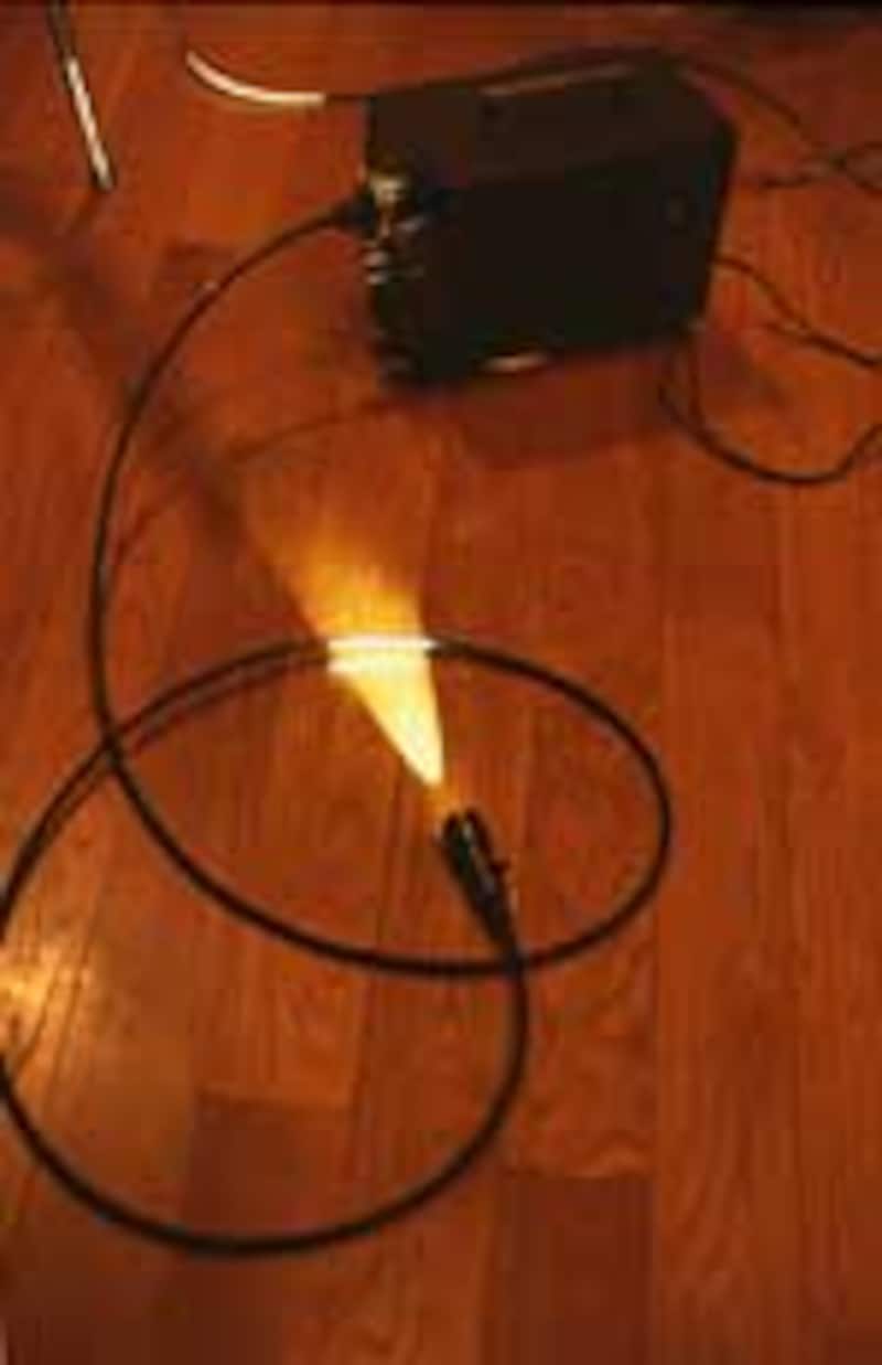 照明用の光ファイバーには2種類あります。一般的にはケーブルの側面がシールドされていて先端部が光る点光源タイプとケーブル側面をシールドしないでファイバーの表面がライン状に光るタイプです。