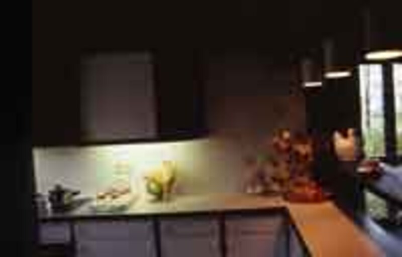 例えば7~8平方メートルくらいのL型キッチンであれば、天井に40Wの直管型蛍光ランプ器具を直付けするか、埋め込むと良いです。器具は乳白カバーやプリズムカバー付きで眩しくなく、光がほど良く拡散していれば効果的です。