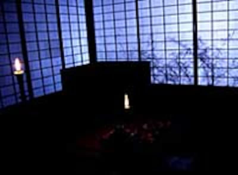 | 写真4.金屏風に反射した蝋燭の光が部屋を照らしています。 |