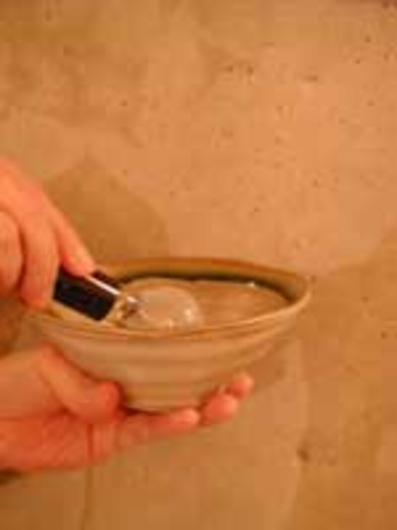 | 写真3 実験では焼き物の茶碗を使用しています。 |