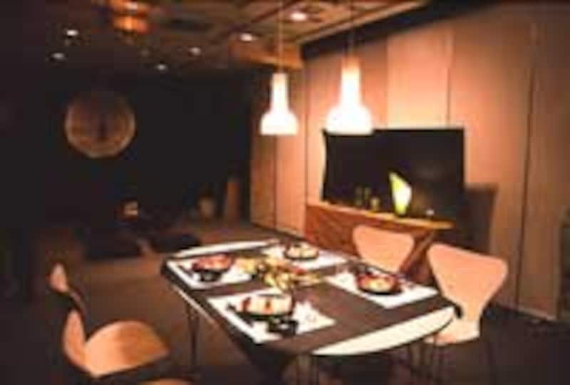 その結果が、写真3~5になります。ある部分は仮設的ですが、照明熱さえ注意すれば自宅でも応用できるものです。同じ間取りで、同じ家具を置いた空間でも、インテリア小物と照明によってこんなに空間は変わるものなのかを実感できることが興味深いです。