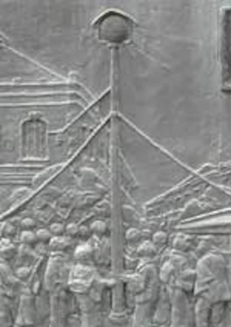 銀座にアーク灯が点灯された場所の痕跡が今でも碑になって残っております。その碑は浮世絵に出ているものと似たような絵になっています。(写真1)アーク灯が初めて点灯された場所から近いところには、銀座で初めて点灯されたガス灯のモニュメントも残されています。