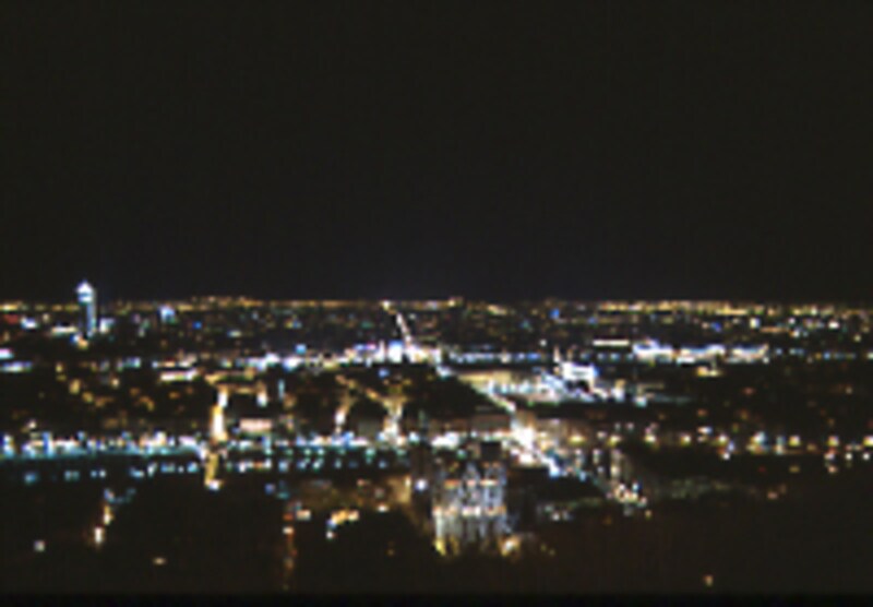 フルヴィエールの丘に上がるとリヨンの街が一望できる絶好の場所があります。日本の函館や長崎の山から見下ろす夜景に比べ街全体は明るくありませんが雰囲気はあります。丘を昇りきるとサン・ジャン大司教教会があり、そこもライトアップされています。外から投光照明されるだけではなく内部の光が窓を透して見えるため、とても立体的で丘の下からの視点でも目立ちます。