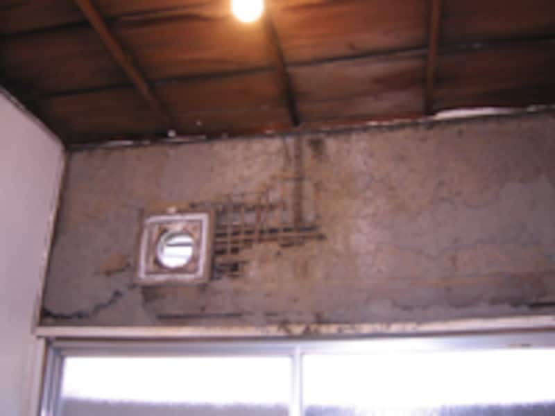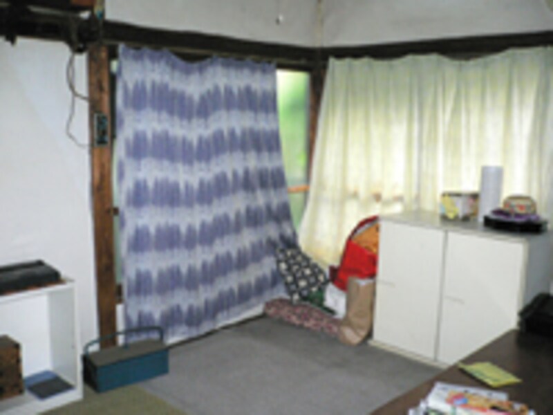 | 壁は昔の家の定番ともいえる竹小舞ですが、土壁がはがれてしまっています | 室内が微妙にゆがんで見えますか? でも、これはレンズのせいではありません |