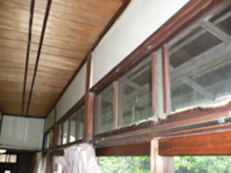 | 廊下の掃き出し窓の上には、さらに窓が。戦前の住宅で、ハイサイドライトとは、超モダン? | キッチンの天井には天窓(トップライト)がありました。これは現代にもいきる工夫ですね |