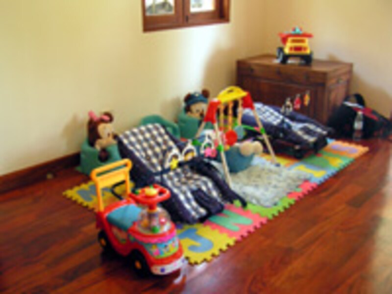 遊具も充実のリビング、ベビーベッドが揃ったお昼寝専用室、そしてなにより注目なのがキッチンの設備です。瓶詰めの離乳食、電子レンジ、ミキサーに冷蔵庫、そしてミルクのお湯を温める機械から煮沸用の機械までもが揃っていて、それらをすべて無料で使うことができます。