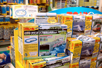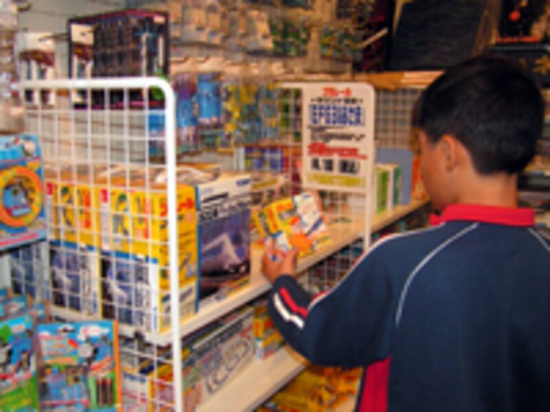 玩具店などのデモ機の前には、常に子どもたちの姿が!また、写真の「日本一周 僕はプラレール運転士」のように、テレビにつないで楽しむ電車の運転シミュレーターゲームタイプのものも、子どもたちの人気を集めています。